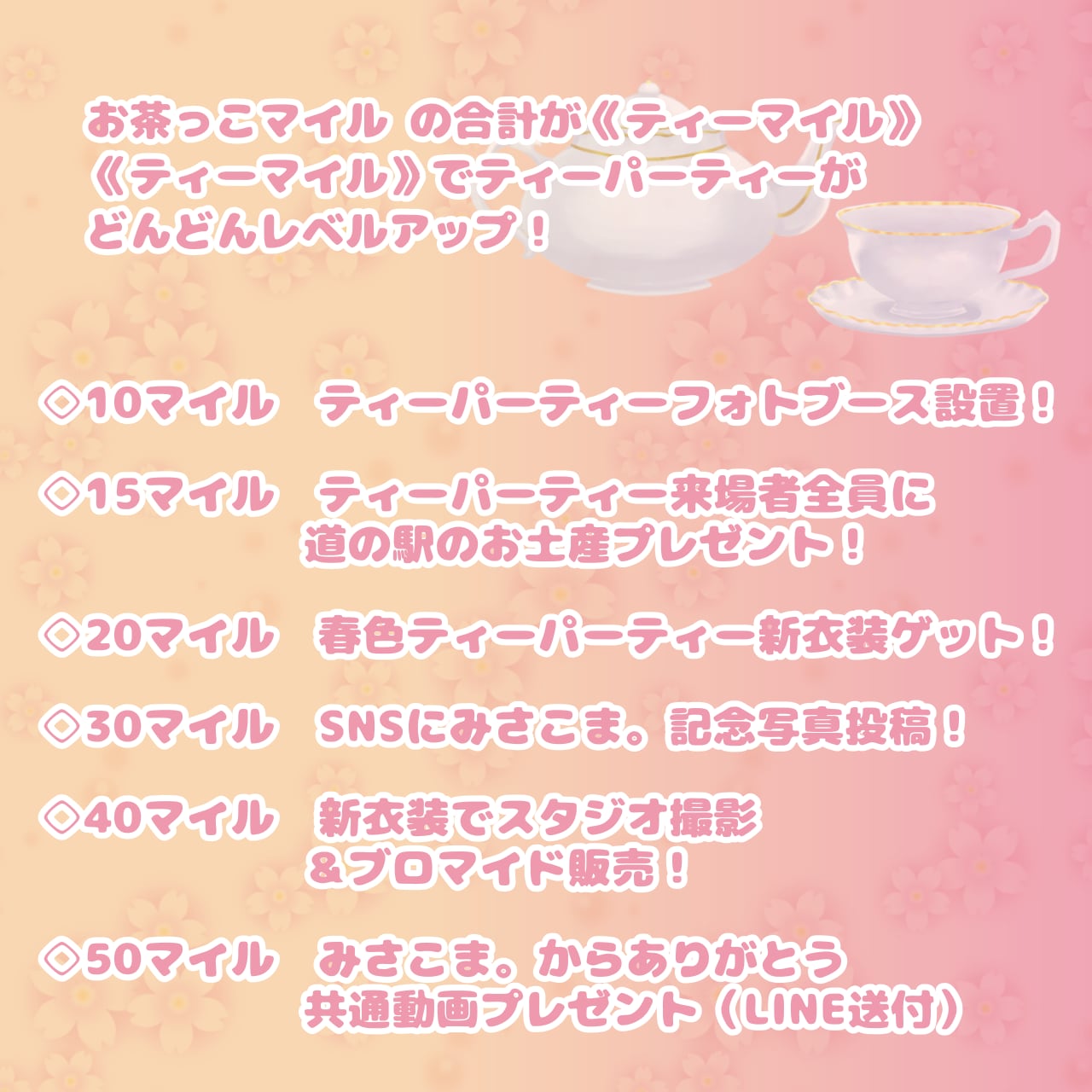 みんなでティーマイルを貯めて、春色ティーパーティーを最高に楽しみましょう♪